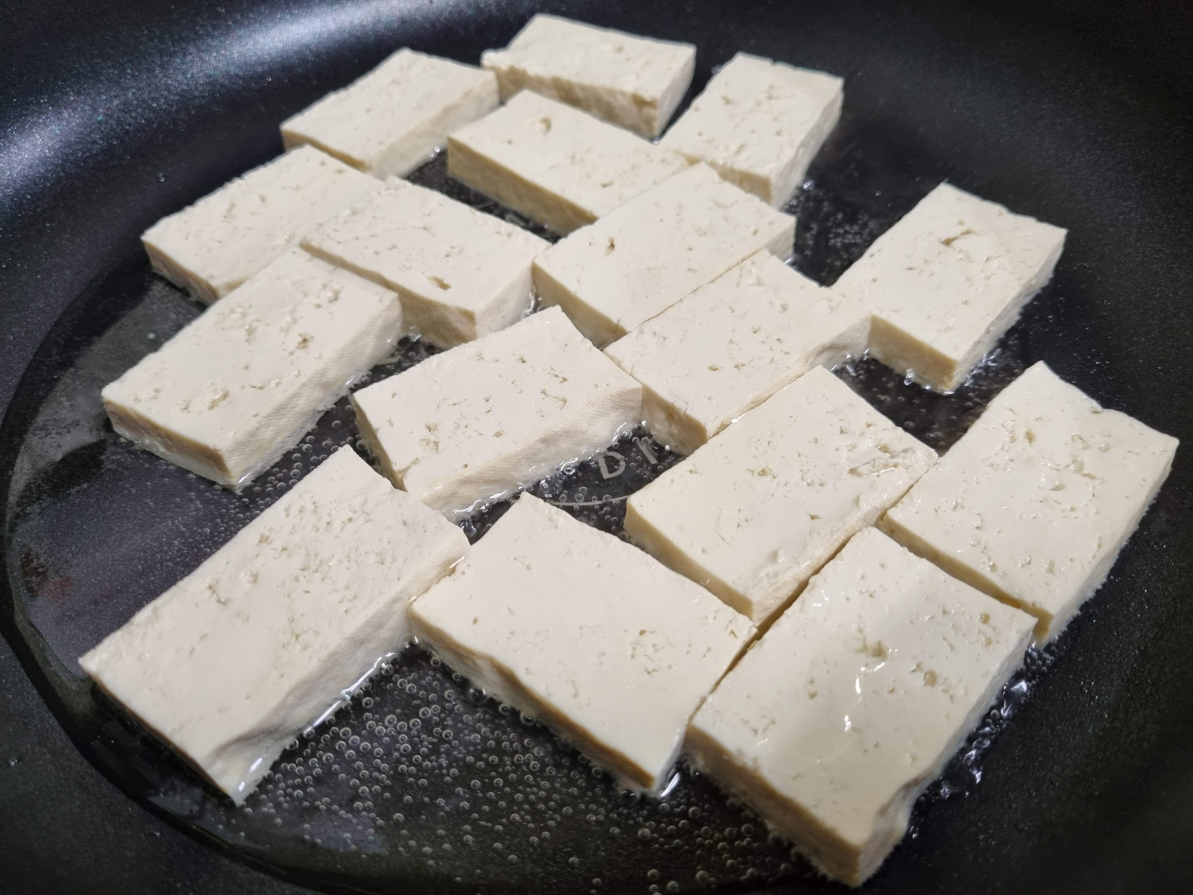 - 먼저 식용유를 적당히 붓고 두부를 구웠어요.