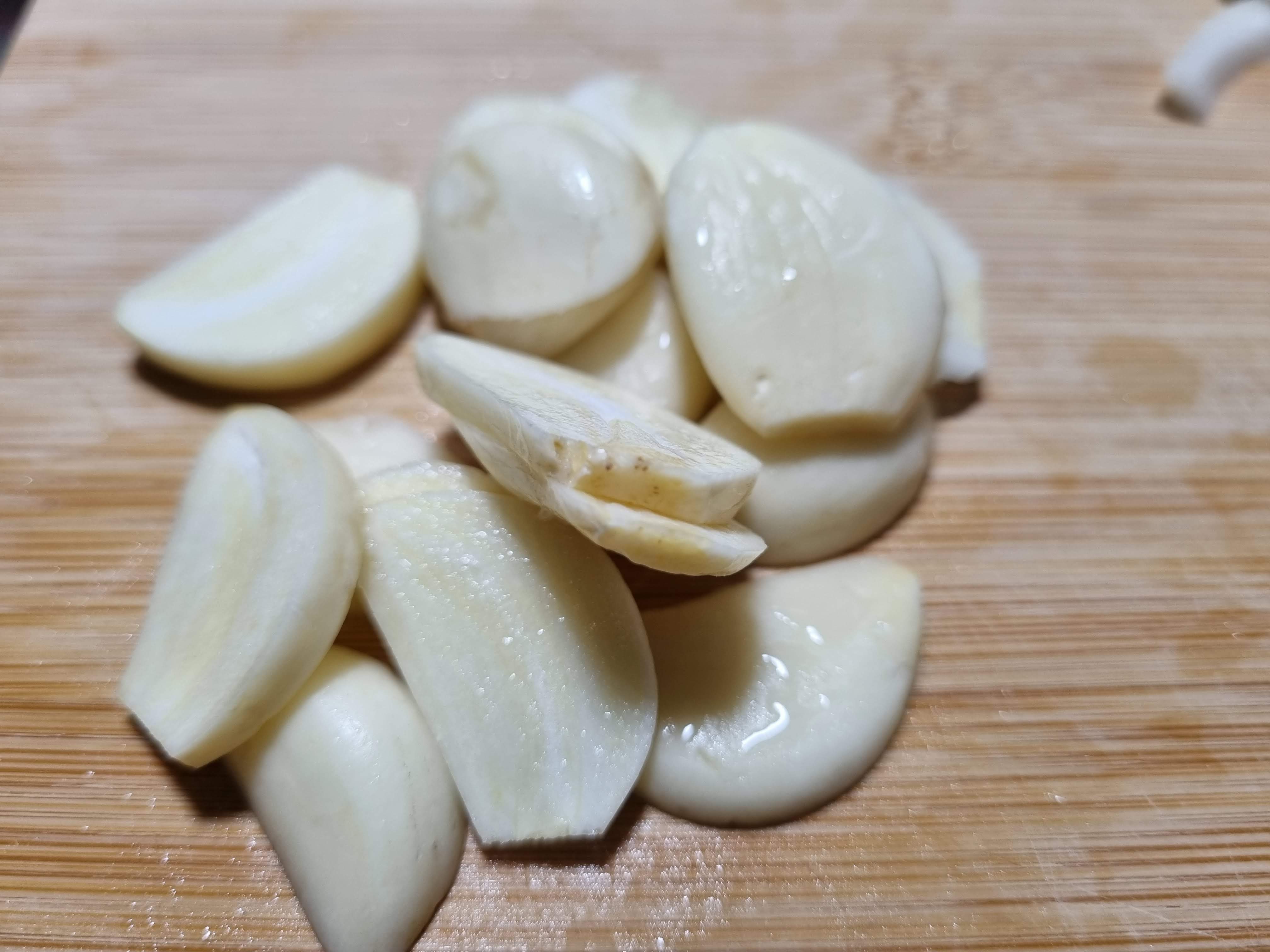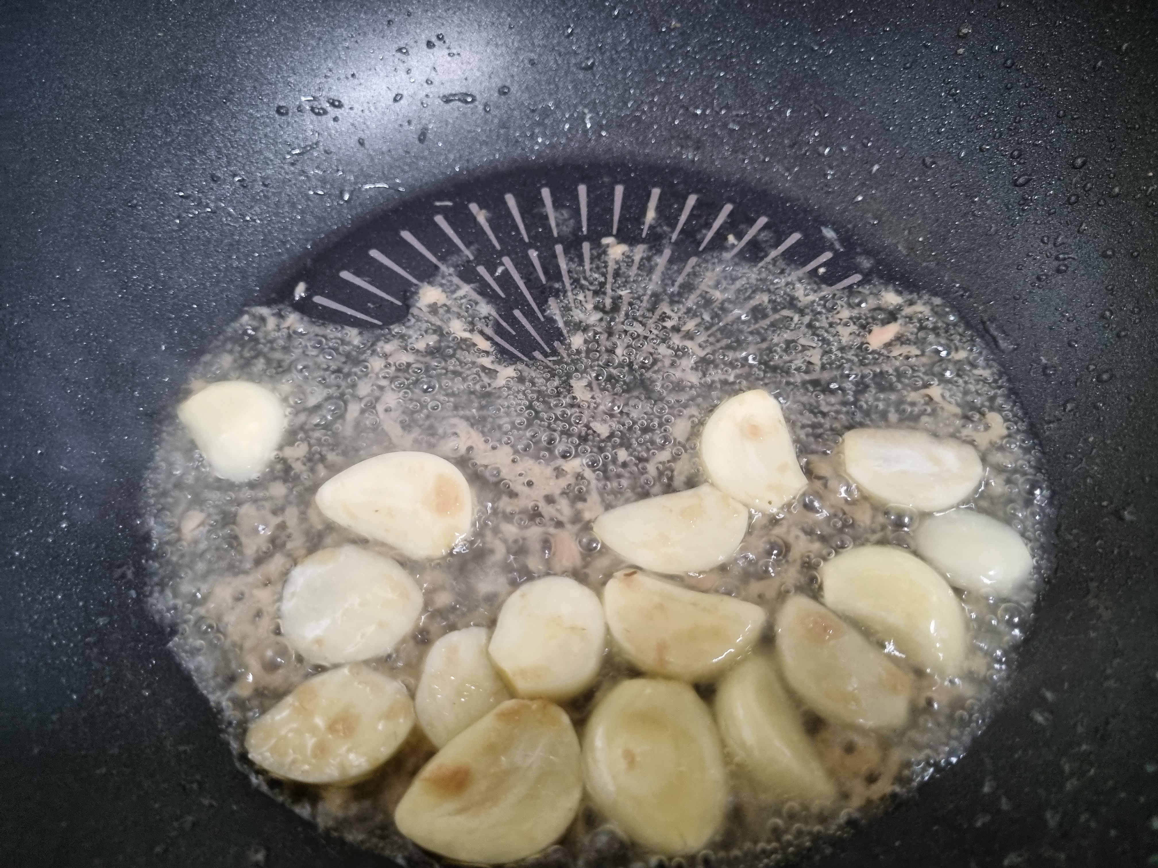 - 그다음 중 약불에 마늘을 적당히 튀기듯 볶았습니다.