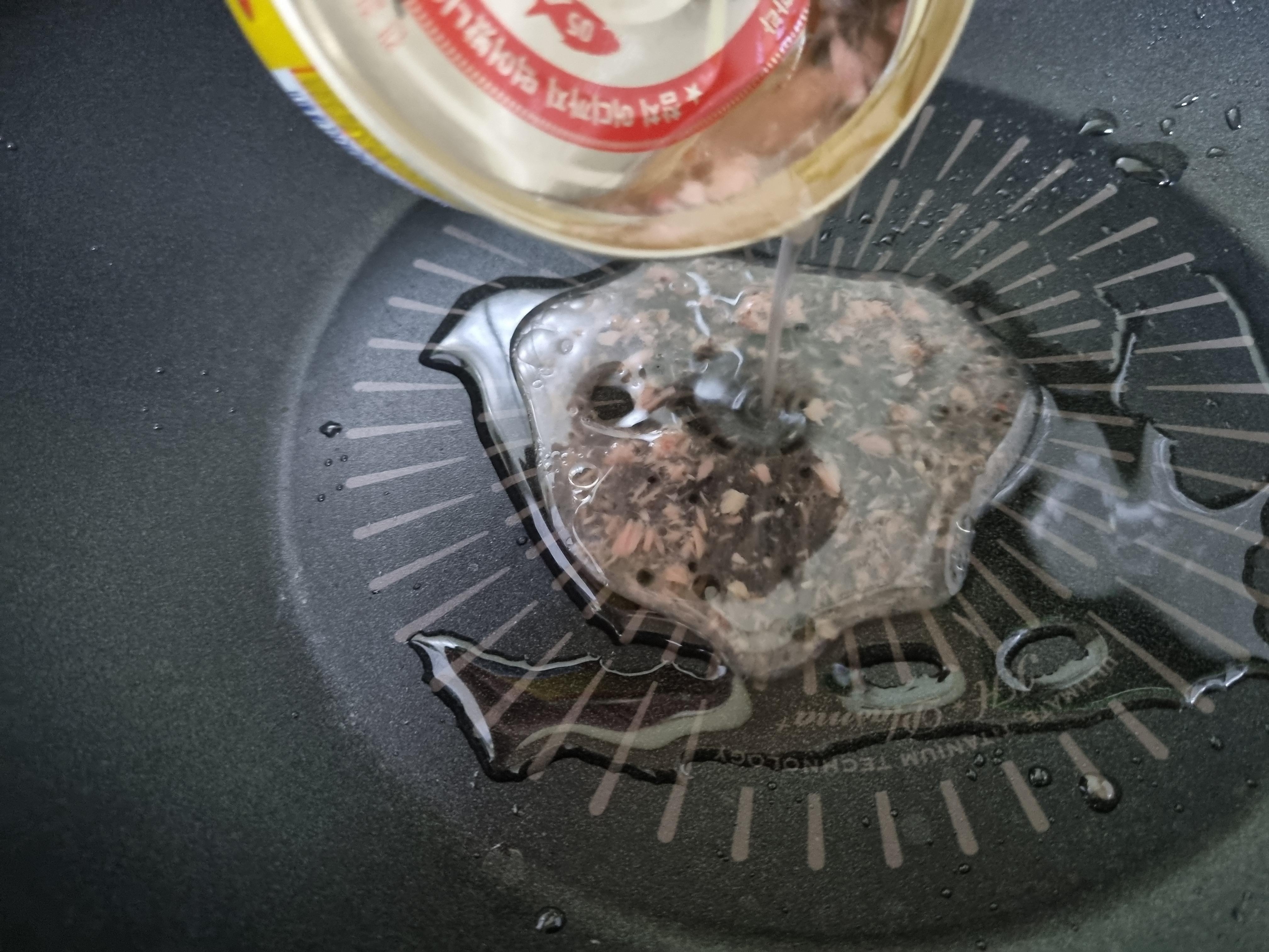 - 다른 프라이팬에 식용유 아주 약간을 두르고 참치 기름을 꾹 짜서 넣어줬어요.