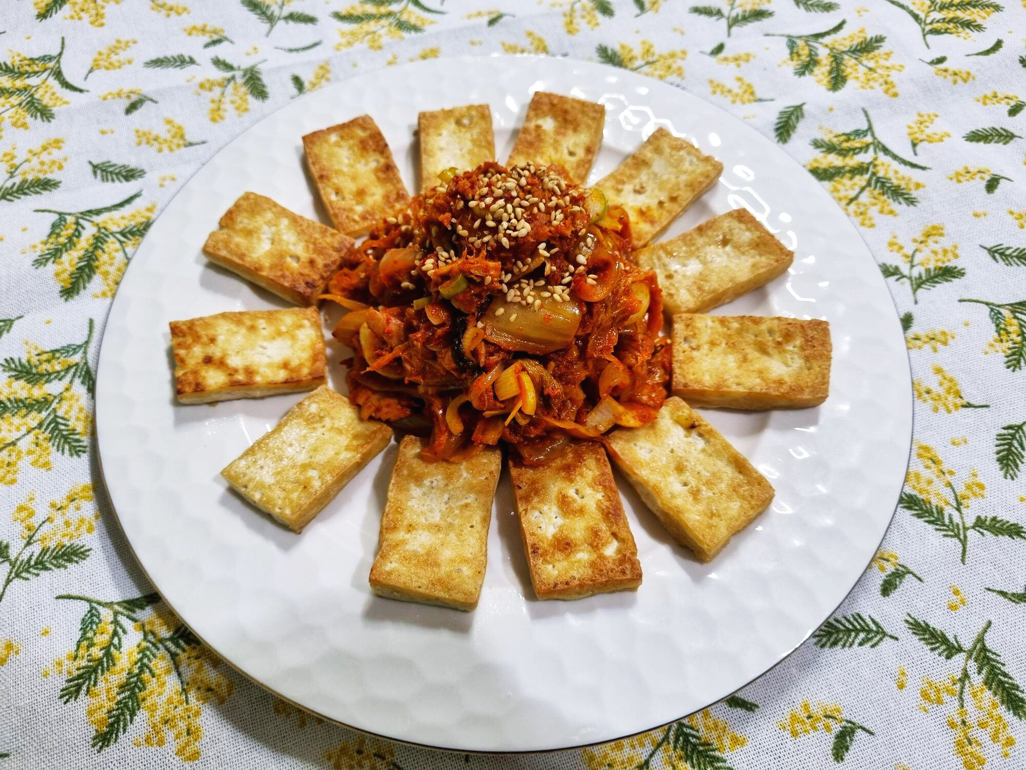 - 주말에 간단한 안주로 만들어 먹기 정말 좋아요. 매콤한 김치볶음에 참치 조합이 정말 잘 어울리고 고소한 두부구이 역시 정말 잘 어울려요. 집에서 만드는 안주 메뉴로 두부김치 강추예요. 남은 김치볶음은 밥반찬으로 먹는 것도 최고죠.