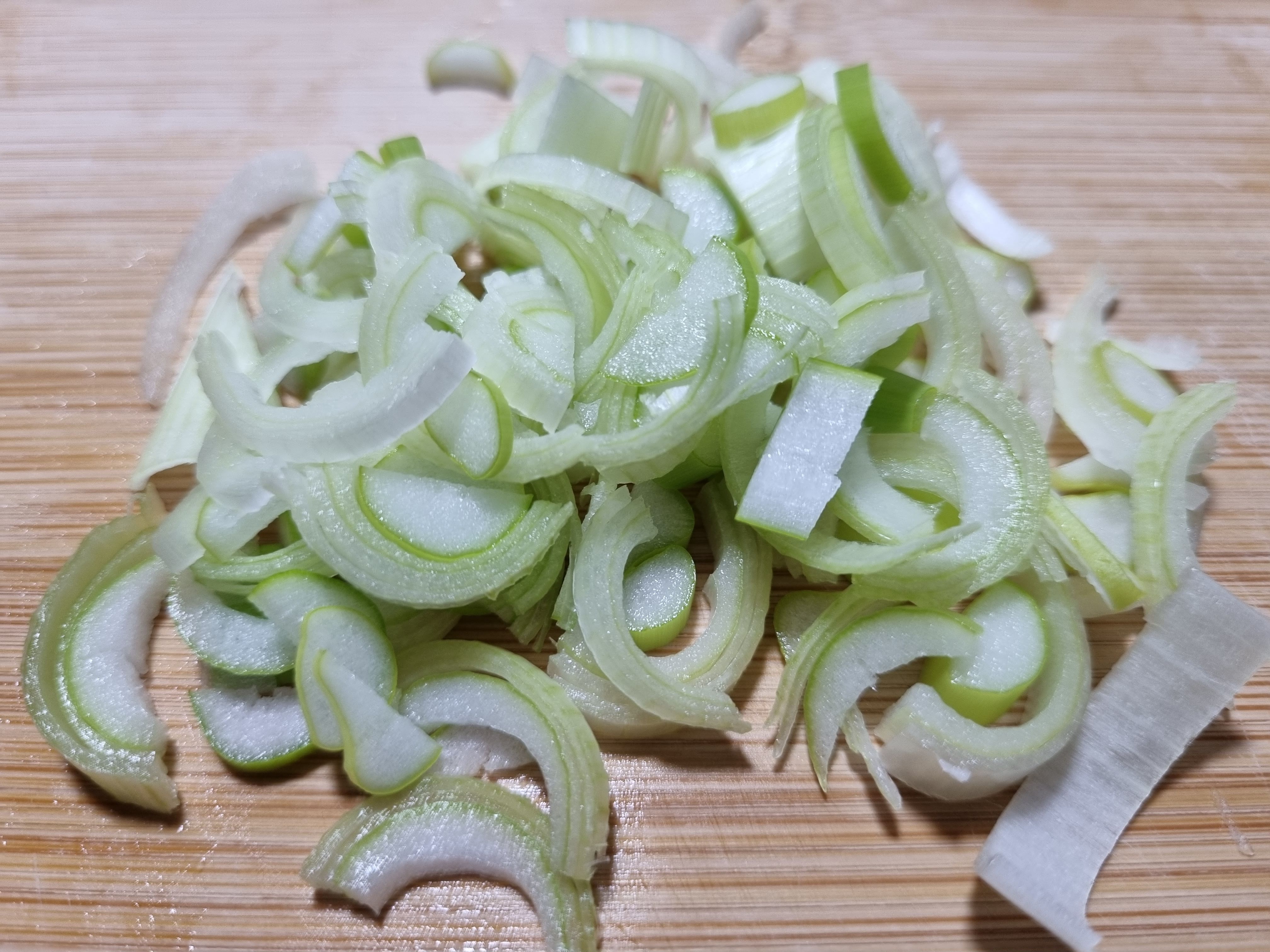 - 양파는 채 썰었고 마늘은 슬라이스, 대파는 적당히 잘게 썰었습니다.
